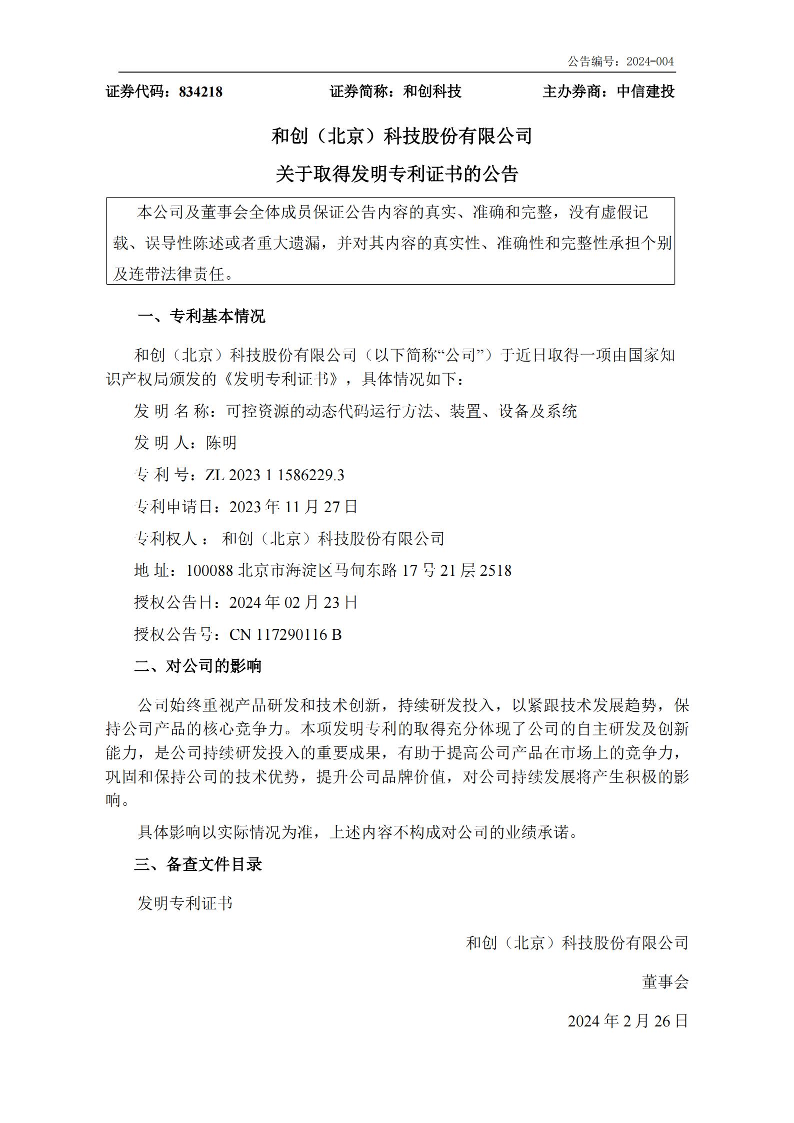 創(chuàng)新驅(qū)動(dòng),不斷突破!恭喜和創(chuàng)科技再添一項(xiàng)新的發(fā)明專利!