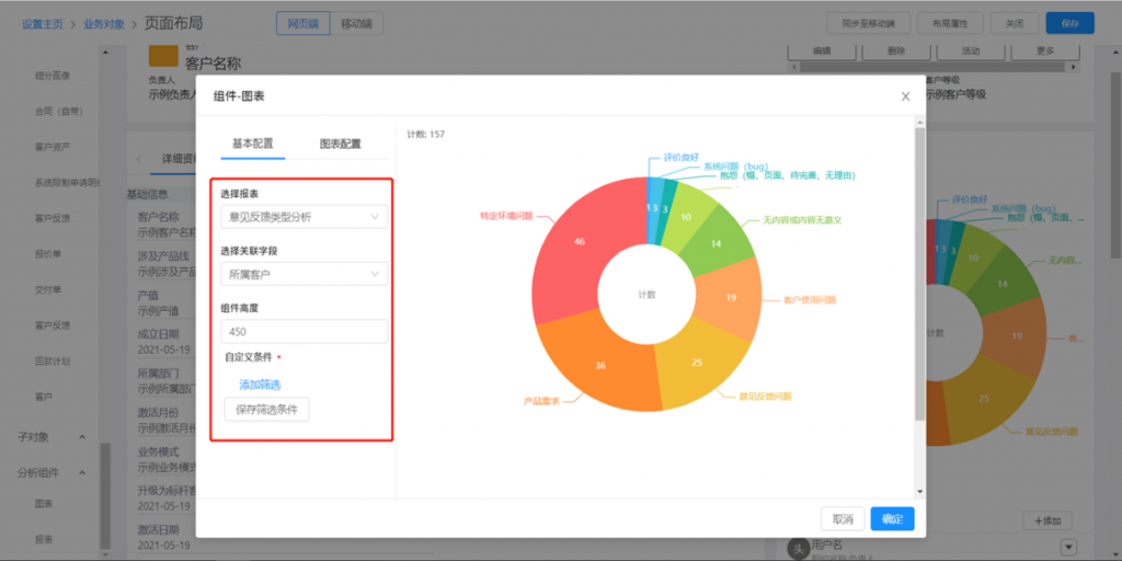 - 分析組件:選擇圖表和報表,拖入右側頁面區域進行配置