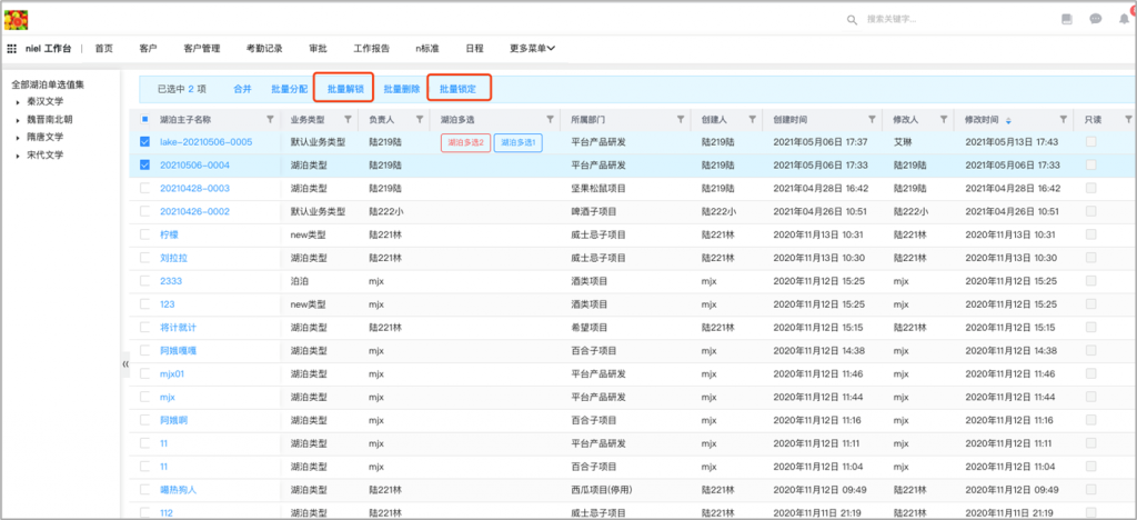 - 列表頁批量按鈕支持執行鎖定和解鎖動作:列表頁批量按鈕支持執行動作,可以執行鎖定和解鎖動作,在前端實現批量鎖定和批量解鎖